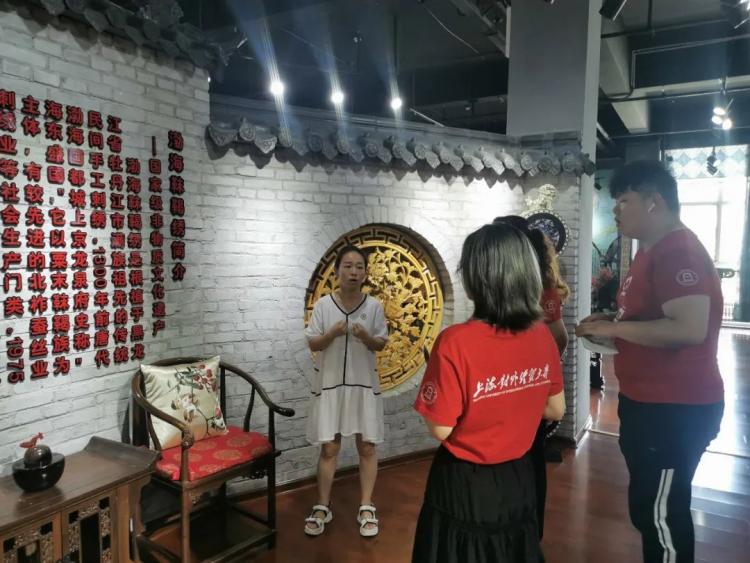 會(huì)展與旅游學(xué)院黃輝博士作為指導(dǎo)老師,牛思琪作為隊(duì)長(zhǎng)的實(shí)踐隊(duì)伍7月底前往牡丹江市渤海靺鞨繡展館進(jìn)行參觀,走近渤海靺鞨繡,感受刺繡的魅力,了解非物質(zhì)文化遺產(chǎn)傳承和發(fā)展?fàn)顩r。小組在靺鞨繡工坊進(jìn)行了刺繡體驗(yàn)以及靺鞨繡掛飾的制作,在體驗(yàn)渤海靺鞨繡制作過(guò)程中也感受到刺繡的不易。繡娘長(zhǎng)時(shí)間維持身體前傾的姿態(tài)專注著進(jìn)行刺繡,成熟的刺繡技藝也需要繡娘積年累月的努力,才能成就精美的藝術(shù)作品。傳統(tǒng)刺繡工藝面臨著人才缺乏,題材單調(diào)等問(wèn)題。渤海靺鞨繡尋求發(fā)展,將攝影作品與繡品相結(jié)合,發(fā)展多種刺繡作品尋求經(jīng)濟(jì)效益,吸引更多的人學(xué)習(xí)和傳承靺鞨繡。