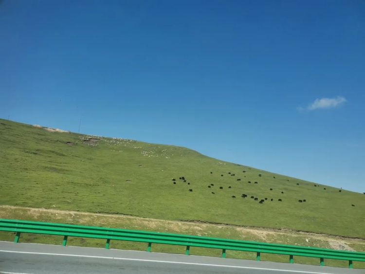 實(shí)踐隊(duì)在海拔三千多的高原看山,看水,看草地,沿著公路感受自然環(huán)境的變化。