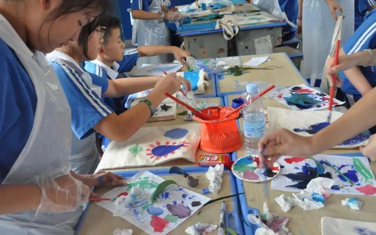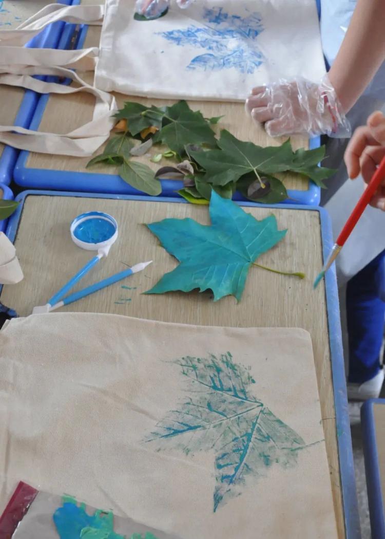 從感知生活中的藝術(shù)開始,到設(shè)計(jì)logo、創(chuàng)作陶藝作品、葉拓帆布包等等;變換的線條和色彩熏陶著孩子們的審美,在自己的筆下,一個(gè)個(gè)生動(dòng)的人物被創(chuàng)造出來(lái),通過(guò)上色再讓這些人物角色來(lái)到現(xiàn)實(shí)世界。
