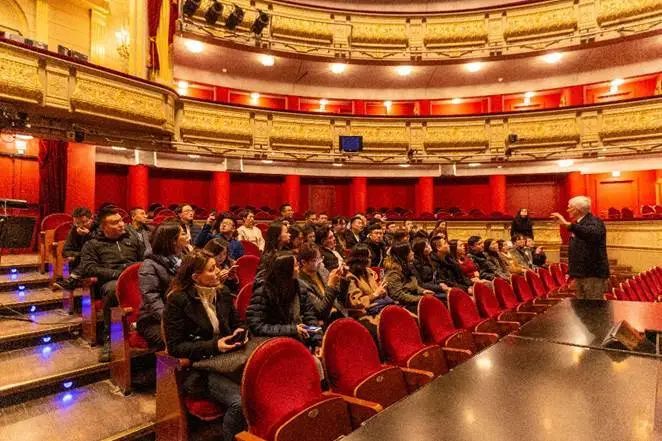 為了讓同學(xué)們?nèi)轿涣私怦R德里,在收獲滿滿的課程之余,Inditex還為我們安排了別具一格的City Tour。從群星閃爍、獎(jiǎng)杯林立的伯納烏球場(chǎng),到館藏豐富、匯集大師經(jīng)典的索菲亞王后藝術(shù)中心,再到古老奢華、匠心獨(dú)運(yùn)的皇家劇院,我們時(shí)而被球場(chǎng)上的熱血和狂歡感染,時(shí)而在畢加索的《格爾尼卡》面前駐足驚嘆,而皇家劇院中充滿時(shí)間積淀的解說(shuō)更是讓大家流連忘返。西班牙的天空如一枚藍(lán)寶石鑲嵌在伯納烏球場(chǎng)上空,索菲亞博物館中高大的走廊和窗外林立的樹木散發(fā)迷人的氣息,富麗堂皇的劇院里,咯吱作響的地板仿佛彈奏一曲時(shí)光流淌、藝術(shù)不息的鋼琴曲,讓我們深深沉浸在這個(gè)藝術(shù)和激情并存、古老與現(xiàn)代交融的城市里。