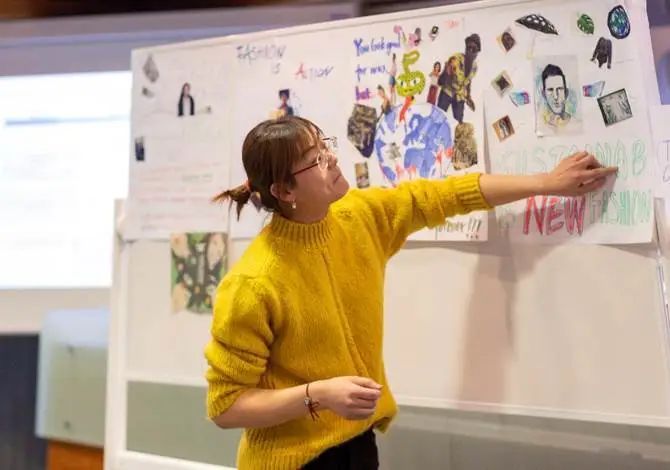 以小組為單位的討論、實(shí)踐和展示貫穿了整個(gè)西班牙的學(xué)習(xí)過(guò)程。課程伊始,我們就在Alfred教授的引導(dǎo)下,充分發(fā)揮創(chuàng)造力和動(dòng)手能力制作海報(bào),以展示我們所理解的時(shí)尚和可持續(xù)發(fā)展的關(guān)系。在之后的課堂上,我們又從服裝的材質(zhì)出發(fā)逐一追蹤每一個(gè)生產(chǎn)環(huán)節(jié),深刻的理解制造過(guò)程和環(huán)境的關(guān)系,扭轉(zhuǎn)過(guò)去被忽略甚至錯(cuò)誤的觀念。例如,我們了解到棉花的種植和生產(chǎn)需要大量的農(nóng)藥,危害土壤的健康,實(shí)際上并不是環(huán)保材料,這顛覆了消費(fèi)者普遍認(rèn)為的棉花舒適安全的觀點(diǎn)。