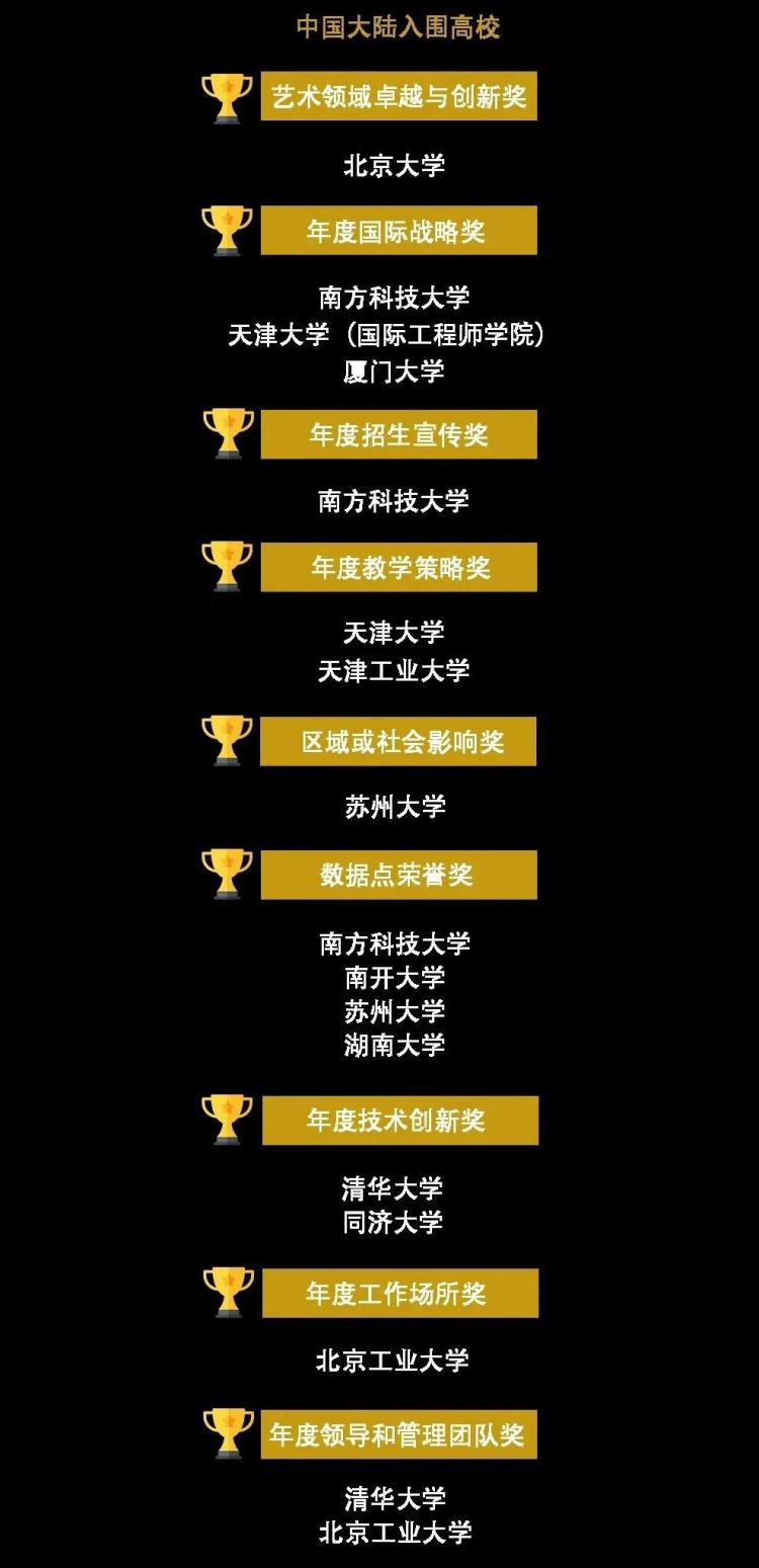 02、中國大陸有10所高校入圍不同的獎(jiǎng)項(xiàng)。