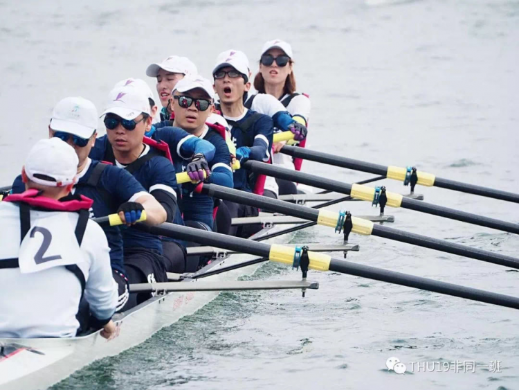 在薪火相傳的賽艇年會(huì),我聽說了2019級(jí)賽艇隊(duì)的事跡。為了參加千島湖32公里俱樂部賽艇挑戰(zhàn)賽,隊(duì)員們?cè)缟?點(diǎn)半起床出發(fā),4點(diǎn)半到7點(diǎn)半在房山訓(xùn)練賽艇,8點(diǎn)50分出現(xiàn)在清華課堂(清華的學(xué)術(shù)考勤制度非常嚴(yán)格),晚上有些隊(duì)員甚至要回到工作崗位上加班。隊(duì)員們當(dāng)時(shí)只接觸了1個(gè)月賽艇,集訓(xùn)過4次,訓(xùn)練時(shí)最長(zhǎng)只劃過參賽長(zhǎng)度1/32。在這種情況下,隊(duì)員們參賽的時(shí)候堅(jiān)持劃完了全程,手和大腿都磨破了。這在我看來是一個(gè)奇跡,是體育精神和隊(duì)員們意志的勝利。