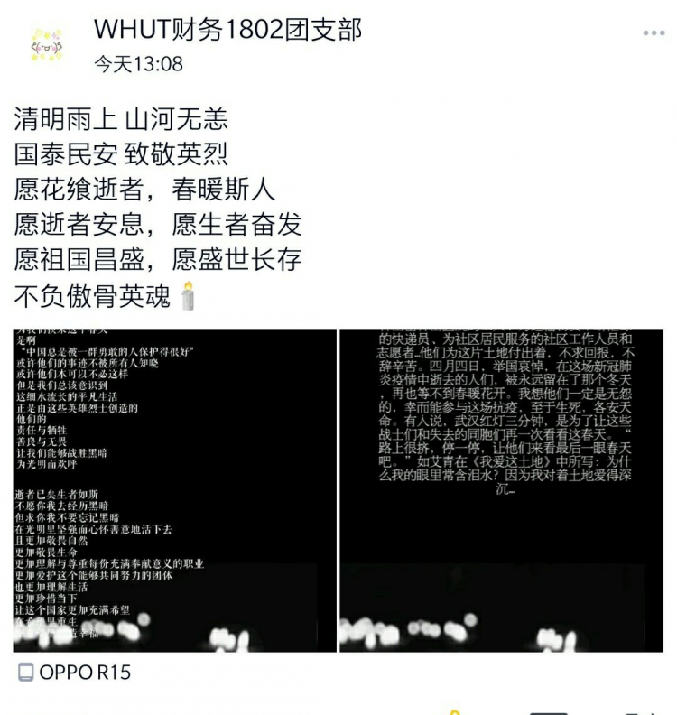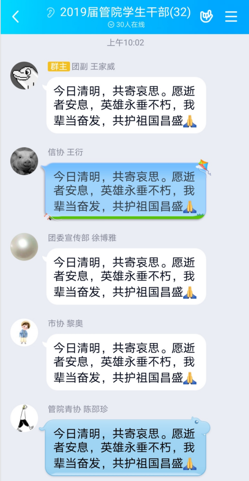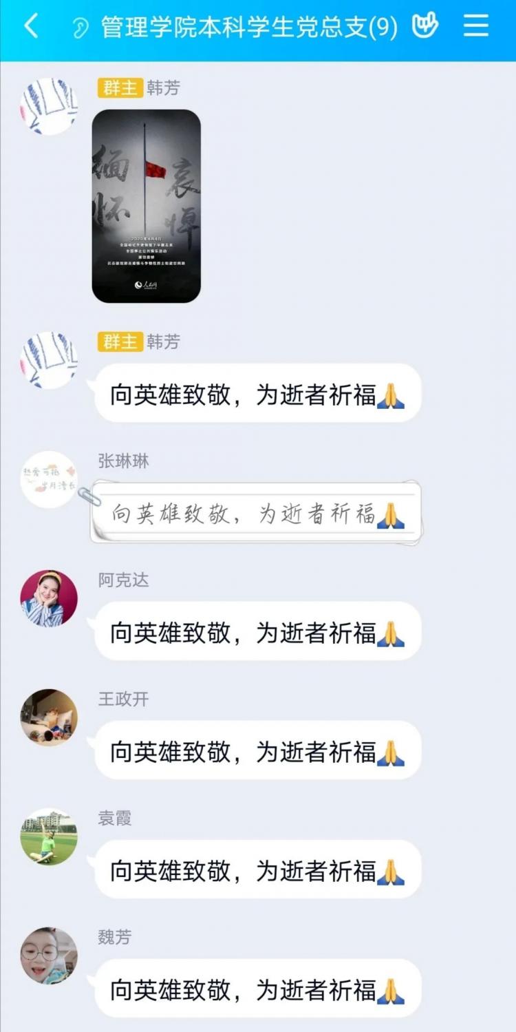 管理學(xué)院本科生黨總支、各本科生黨支部成員紛紛在線上線下深切哀悼抗擊新冠肺炎疫情斗爭(zhēng)犧牲烈士和逝世同胞。