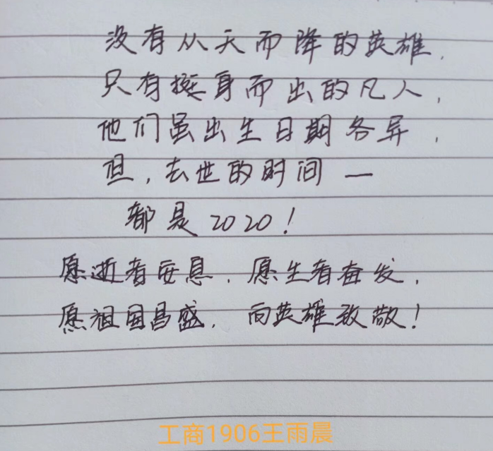 同學(xué)們紛紛用文字、圖片、視頻、繪畫(huà)等形式參與哀悼活動(dòng)。2017級(jí)黎奧同學(xué)用一首詩(shī)來(lái)表達(dá)自己的緬懷之情: