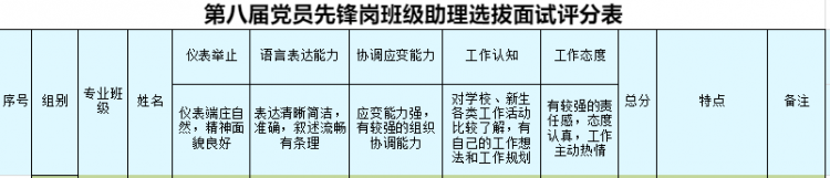 緊接著,進入提問環(huán)節(jié)。評委們根據(jù)PPT講解以及報名表中發(fā)現(xiàn)的問題,針對班級助理的工作職責、內容和特點以及日常工作中可能會出現(xiàn)的棘手問題對面試者進行提問,考察他們語言表達、組織協(xié)調、緊急事件處理情況等綜合能力。