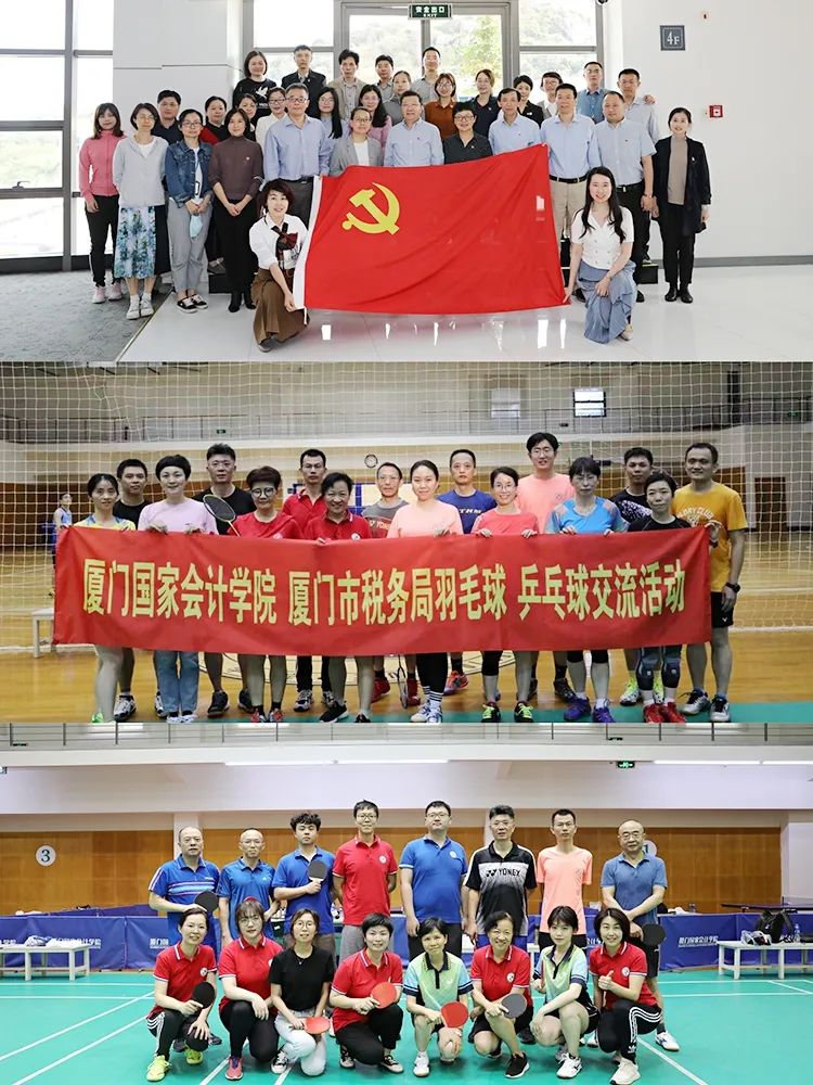 近日,學(xué)院聯(lián)合國家稅務(wù)總局廈門市稅務(wù)局舉辦了主題黨日、體育競賽等黨建共建交流活動,通過學(xué)習(xí)黨史,接受紅色洗禮,結(jié)合黨建與業(yè)務(wù)開展深入交流,并在羽毛球、乒乓球友誼賽中彰顯昂揚(yáng)奮進(jìn)的精神風(fēng)貌,共同迎接中國共產(chǎn)黨的百年華誕。學(xué)院黨委委員、副院長李進(jìn)西,黨委委員、副院長黃京菁等出席相關(guān)活動。