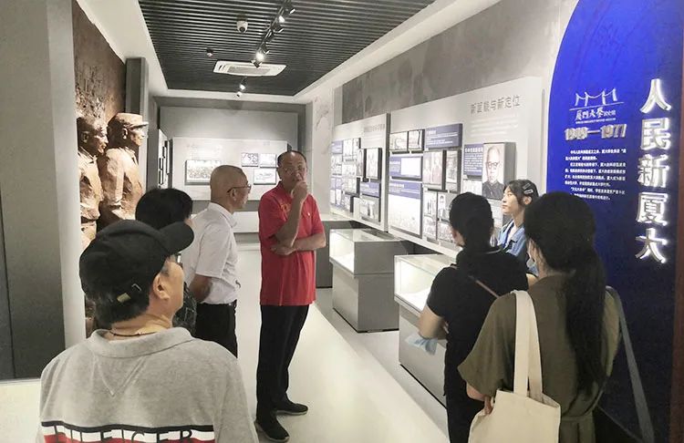 最后,支部一行來到廈大校史館,重溫廈門大學(xué)百年辦學(xué)歷史和成就。參觀中,退休人員黨支部書記李海濱同志談到了自己的入黨初心,回憶起了我院的發(fā)展歷程,從創(chuàng)辦學(xué)院初衷、為何選址廈門講起,回憶了近20年來我院辦學(xué)和發(fā)展的激情榮光歲月。