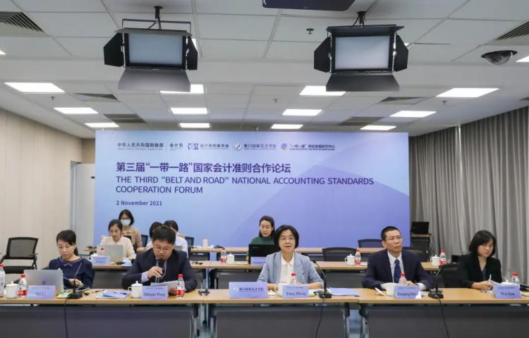 11月2日,由財政部會計司、會計準則委員會主辦,廈門國家會計學院承辦的第三屆“一帶一路”國家會計準則合作論壇(以下簡稱“合作論壇”)以視頻會議形式舉行。中國、柬埔寨、老撾、蒙古國、尼泊爾、新西蘭、巴基斯坦、俄羅斯、沙特、越南等十個國家會計準則制定機構的代表線上交流,暢談新形勢下會計準則建設面臨的問題與挑戰(zhàn)。中國財政部會計司副司長吳祥云,會計準則委員會副主任張娟,廈門國家會計學院副院長鄭涌,國網(wǎng)國際發(fā)展有限公司副總經(jīng)理、首席財務官劉彥麗,會計準則委員會研究處處長徐華新、聯(lián)絡處處長黃赟,廈門國家會計學院“一帶一路”財經(jīng)發(fā)展研究中心主任鄧建平等作為中方參會代表出席。會議由“一帶一路”財經(jīng)發(fā)展研究中心副主任王智烜主持。