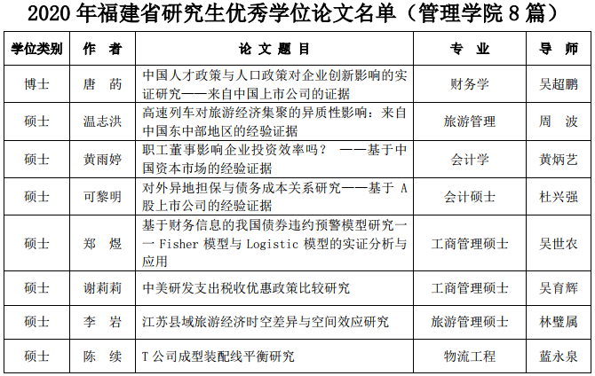 喜訊 | 管理學(xué)院8篇學(xué)位論文獲評(píng)2020年福建省研究生優(yōu)秀學(xué)位論文