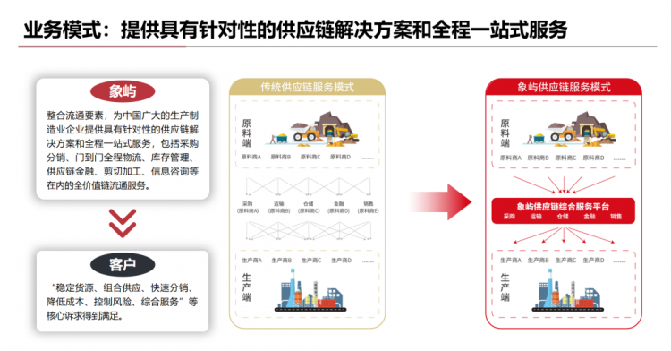 通過整合流通要素,為中國廣大的生產(chǎn)制造業(yè)企業(yè)提供具有針對性的供應(yīng)鏈解決方案和全程一站式服務(wù)。