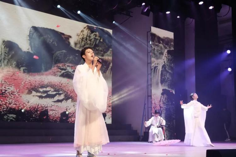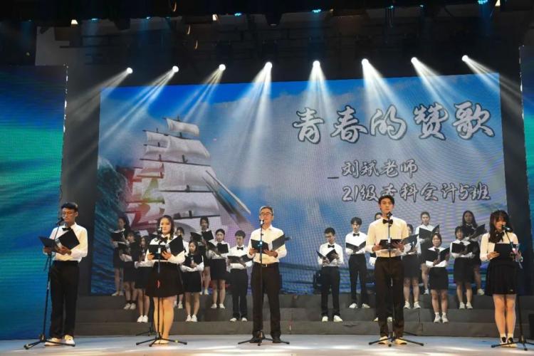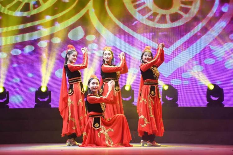 接下來,研究生馬寧帶來獨(dú)唱《愛逝去后》,嗓音渾厚,讓同學(xué)們聯(lián)想起迷霧中的燈塔指引前路,上弦場的鐘聲指引迷津,自此,晚會進(jìn)入了第二篇章“建南鐘鳴 百年回蕩”。2021級管理學(xué)院舞蹈隊(duì)帶來舞蹈《水出芙蓉》。她們頭戴鳳釵,手持折扇,在舒緩的音樂下翩翩起舞,在燈光的配合下,舞臺上唯見嘉影款款而來,霓裳朵朵而起,芙蓉在舞臺中央綻放。接著,七位2021級本科生帶來的韓舞串燒《blackluv》收獲了全場歡呼,絢爛的舞姿,既展現(xiàn)了青春的活力,也讓觀眾領(lǐng)略到舞蹈的魅力。而帶領(lǐng)我們走進(jìn)草原風(fēng)情的,是袁樂鑫,阿日斯楞帶來的蒙語彈唱《特斯河之贊》,富有節(jié)奏的旋律,讓觀眾隨之鼓掌,獻(xiàn)上哈達(dá)的習(xí)俗,盡顯蒙古人民的熱情。在新疆舞《天山之春》中,四位新疆姑娘用她們婀娜的舞姿,展現(xiàn)了維吾爾族姑娘對愛情的期許。而后,班主任代表、企業(yè)管理系劉斌老師和2021級會計(jì)五班帶來的詩朗誦《青春的贊歌》,勉勵全體商科人高唱青春贊歌,一路唱響,歌聲嘹亮。