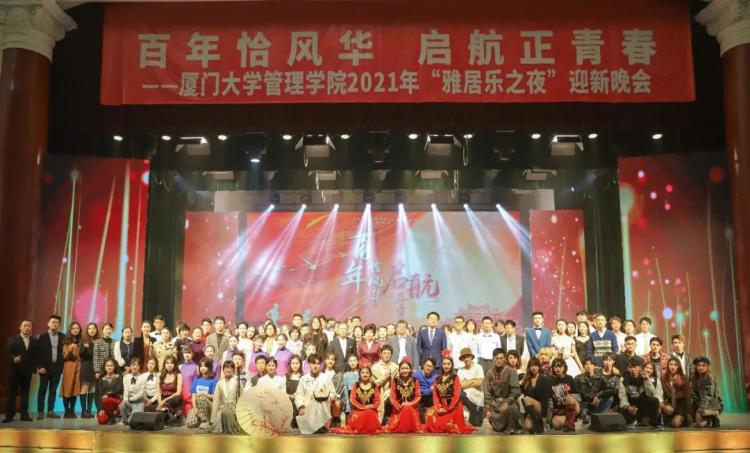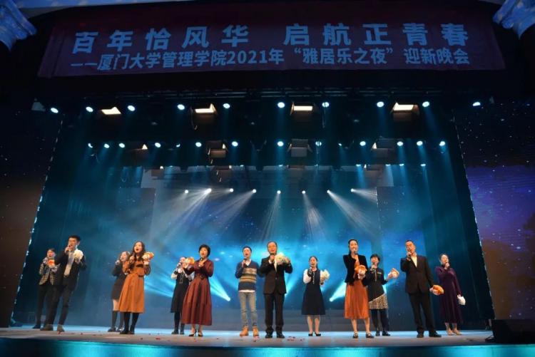 校歌響起,“百年恰風(fēng)華 啟航正青春”廈門大學(xué)管理學(xué)院2021年“雅居樂之夜”迎新晚會圓滿結(jié)束!