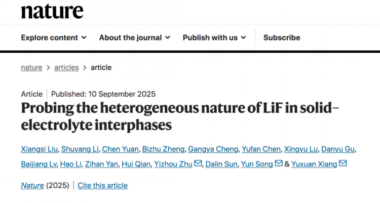 北京時間9月10日23時,西湖大學(xué)工學(xué)院向宇軒課題組與朱一舟課題組合作,以Probing the Heterogeneous Nature of LiF in Solid-Electrolyte Interphases為題,在Nature雜志發(fā)表最新研究成果。他們在二次電池電極-電解質(zhì)界面研究中取得突破性進(jìn)展;簡要地說,他們發(fā)現(xiàn)電池負(fù)極“保護(hù)膜”中一種關(guān)鍵物質(zhì)氟化鋰(LiF),不是純的。
