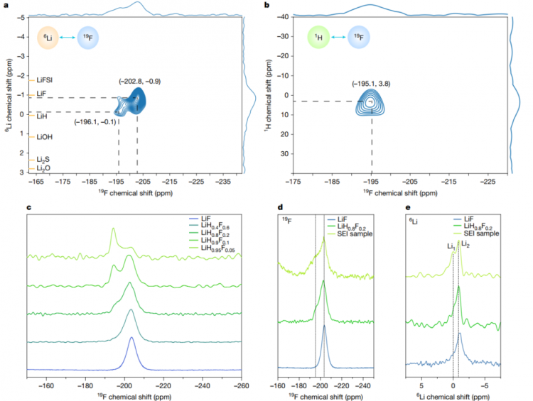 事實上確實如此嗎?為了驗證猜想,他們?nèi)藶閷浼尤氲絃iF中,合成了一系列具有不同比例氫含量的Li-H-F樣品,并再次用核磁共振技術(shù)檢測。事實確實如此!那個曾在氟原子“片子”中新出現(xiàn)“峰”,真的來自于氫含量較高的Li-H-F。