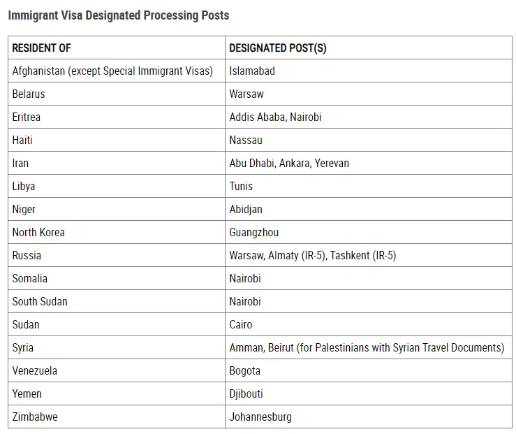 對(duì)于一些美國(guó)未提供常規(guī)非移民簽證服務(wù)的國(guó)家,美國(guó)國(guó)務(wù)院指定了替代面談地點(diǎn):