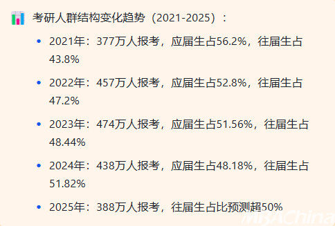 一、數(shù)據(jù)說話:往屆生占比五年連升,應(yīng)屆生首次跌破半數(shù)