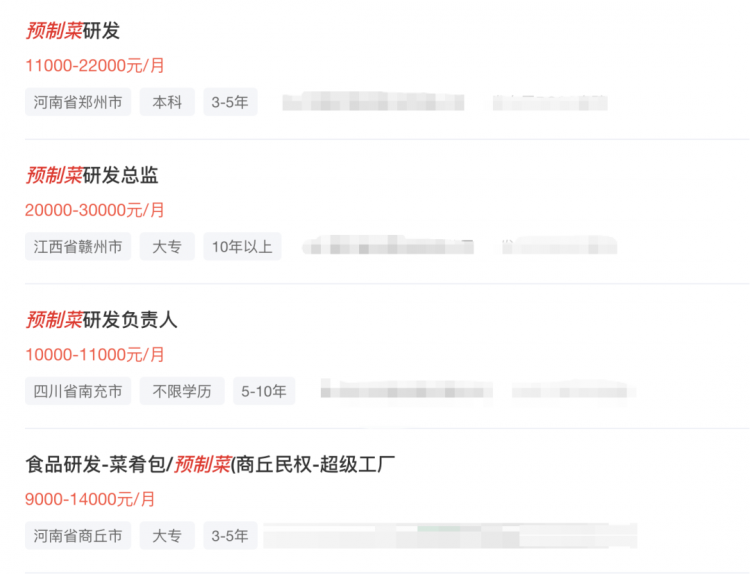 而這當(dāng)中,研發(fā)工程師可以說是預(yù)制菜行業(yè)內(nèi)公認(rèn)的緊缺崗位。目前,從招聘平臺上也可以看到,針對研發(fā)工程師這一崗位,不少企業(yè)給出了1-3萬元/月的高薪資待遇來招兵買馬。
