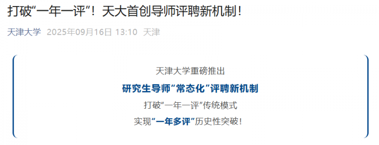 關(guān)聯(lián)問題: 導(dǎo)師制度為何要改革?天大新機(jī)制優(yōu)勢(shì)在哪?未來評(píng)聘機(jī)制啥走向?