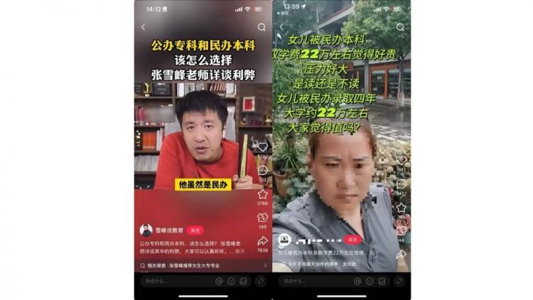桃子認(rèn)為每年花幾萬念民辦院校不值,總是冒出“不讀”的念頭,對(duì)于未來的就業(yè),她也缺乏信心。李茹想要堅(jiān)持下去。她希望用四年的辛苦換得一定程度的穩(wěn)定,將來考公務(wù)員,或者用自己學(xué)的新聞傳播專業(yè)找一家新媒體運(yùn)營(yíng)公司。如果讀的是???,她覺得自己沒有做這樣計(jì)劃的資格。