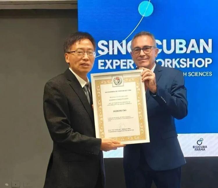 9月12日,古巴科學(xué)院院長在哈瓦那向電子科技大學(xué)堯德中教授頒發(fā)古巴科學(xué)院外籍院士證書和徽章。古巴科學(xué)院旨在促進(jìn)古巴科學(xué)發(fā)展等,外籍院士是授予對古巴科技事業(yè)有重要貢獻(xiàn)外國專家的終身榮譽。堯德中自2011年起與古巴神經(jīng)科學(xué)中心合作,推動中古體系化合作,拓展為三方合作,參與發(fā)起全球腦科學(xué)聯(lián)盟,擴(kuò)大合作至30多國。多年來,他支持中古多層次交流,共同發(fā)表重要論文、推動人員互動。2023年建立中古“一帶一路”聯(lián)合實驗室,提升合作至國家級水平?;谄鋵W(xué)術(shù)成就和對中古合作貢獻(xiàn),古巴科學(xué)院全體院士投票授予其該稱號。此外,還