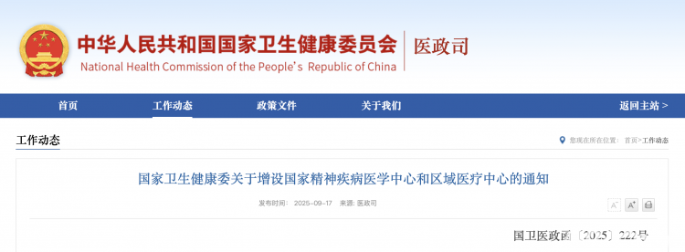 近日,國家衛(wèi)生健康委發(fā)布關(guān)于增設(shè)國家精神疾病醫(yī)學(xué)中心和區(qū)域醫(yī)療中心的通知。