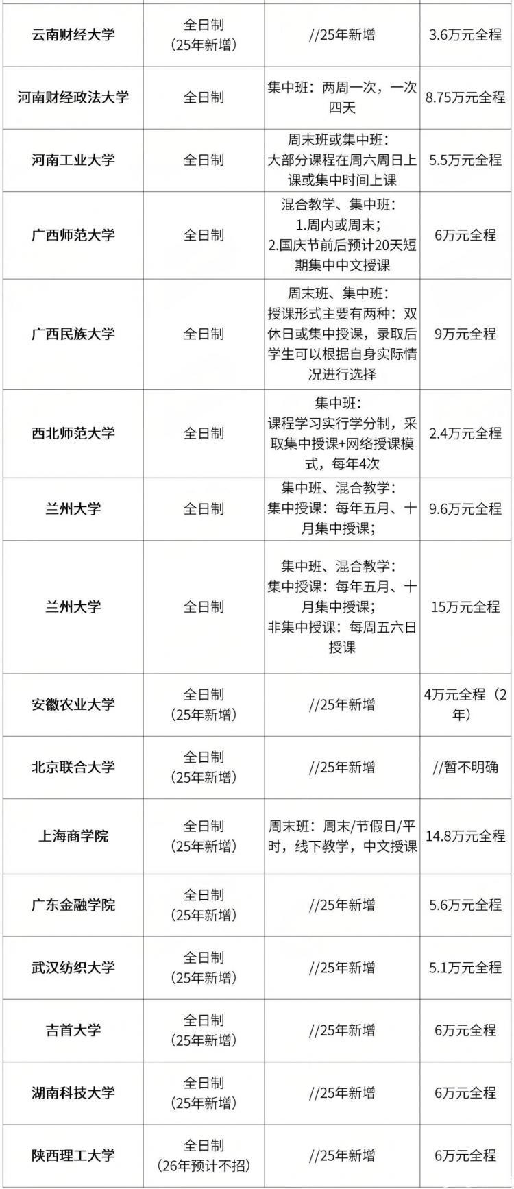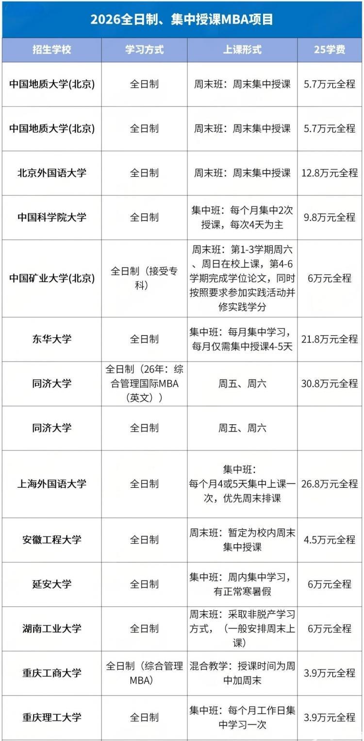 附:2026全日制、集中授課MBA項(xiàng)目匯總