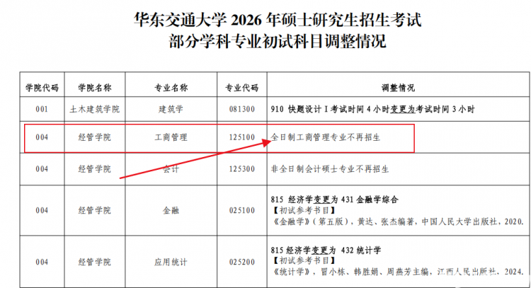 近日,華東交通大學(xué)公布2026年碩士研究生部分學(xué)科專業(yè)初試科目調(diào)整公告,其中明確“不再招收全日制MBA”的消息引發(fā)考研圈廣泛關(guān)注。