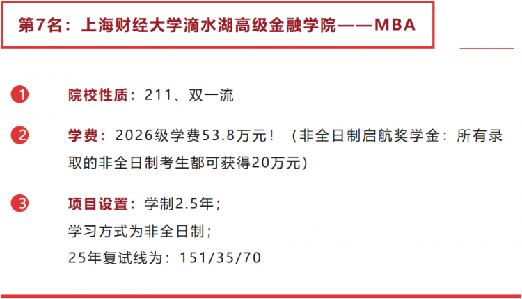近日,山東大學公布2026級MBA招生簡章,新增“科技人才與創(chuàng)新發(fā)展方向MBA”,其學費比其他方向高出4.8萬元,引發(fā)同學感嘆“讀不起”。不過,這與真正的MBA“學費天花板”相比微不足道。常規(guī)思路認為清北作為國內MBA的天花板,學費應最貴,實際卻并非如此。接下來將展示殺入國內最貴MBA學費TOP10榜單的項目。