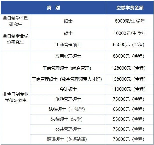 第二十條按照國家政策,從2014年入學(xué)的研究生開始實行收費制度,2026年繼續(xù)執(zhí)行該制度。我校按照浙江省政策收取學(xué)費,碩士研究生繳納學(xué)費標(biāo)準(zhǔn)如下: