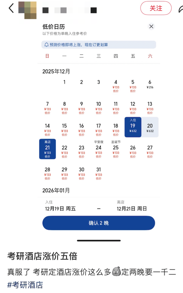 26考研咨詢活動(dòng)才剛剛結(jié)束,但小編看到,考研報(bào)名還沒開始,酒店價(jià)格已經(jīng)“起飛”了!