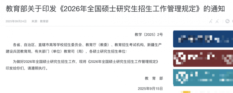 與此同時(shí),教育部也同步發(fā)布了「2026年全國碩士研究生招生工作管理規(guī)定」,讓我們對26考研招生的相關(guān)工作有了大概的了解