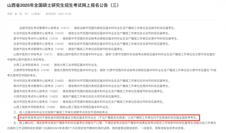 但有些省份明確規(guī)定不接受省外院校的應(yīng)屆生參加考試,無論戶籍是否在本?。ɡ缟轿魇?、黑龍江省等)。這個(gè)需要大家查看相應(yīng)省份的網(wǎng)報(bào)公告,了解報(bào)考點(diǎn)具體要求。