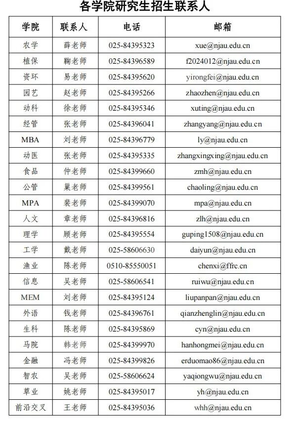 電話:025-84395345郵箱:yzb@njau.edu.cn南京農(nóng)業(yè)大學(xué)研究生招生辦公室