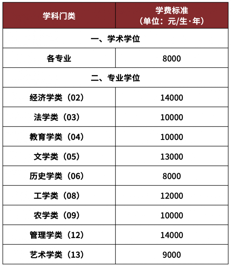 注:文物專業(yè)(1451)參照歷史學(xué)類收費(fèi)標(biāo)準(zhǔn)執(zhí)行,學(xué)費(fèi)標(biāo)準(zhǔn)為8000元/生·年。