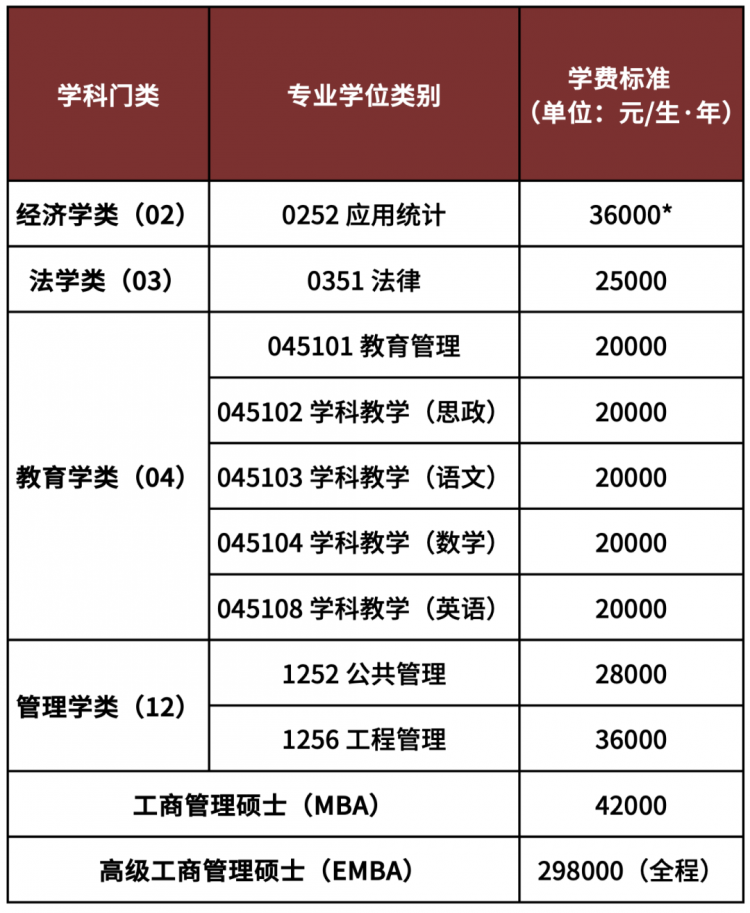 注:應(yīng)用統(tǒng)計(jì)專業(yè)(0252)學(xué)費(fèi)以省級價(jià)格主管部門最終審批為準(zhǔn),若有變化,學(xué)校另行公示公布。