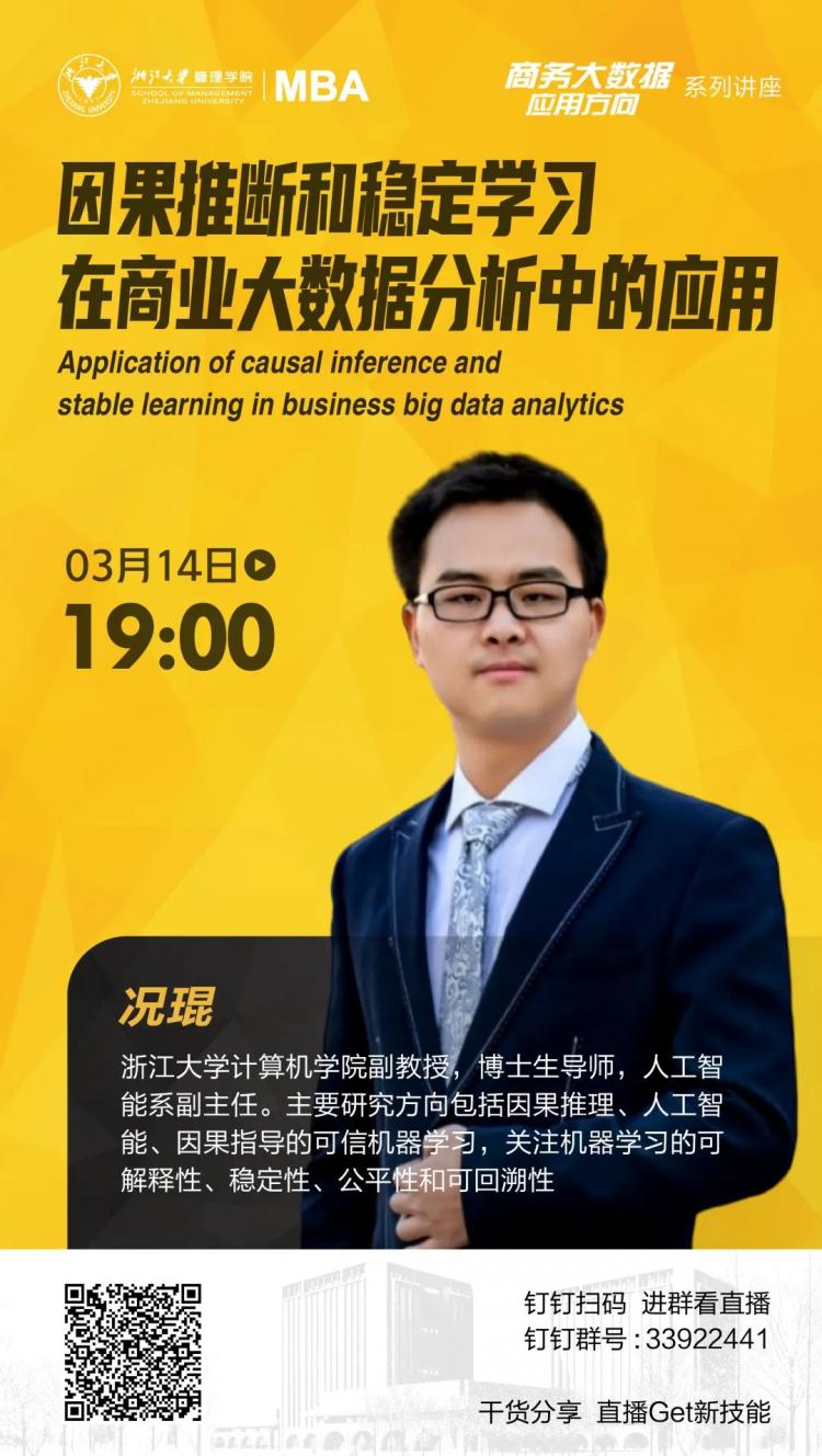 3月14日講座預告|況琨:因果推斷和穩(wěn)定學習在商業(yè)大數(shù)據(jù)分析中的應用