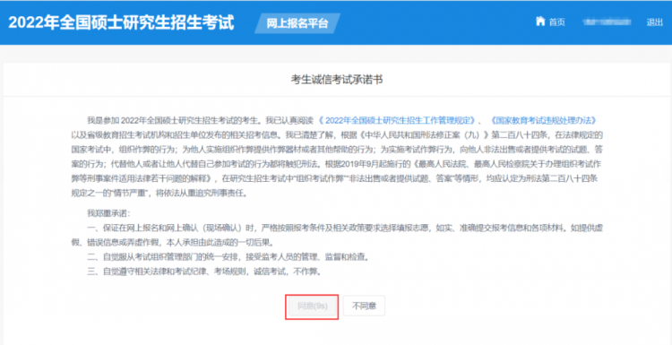 閱讀頁面上出現(xiàn)的《網(wǎng)上報名公告》后,點擊“閱讀完畢”,繼續(xù)閱讀《考生誠信考試承諾書》,點擊“同意”。