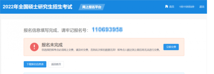 最后,校對所有已填報的信息確認無誤后,生成考生報名號,并下載報名信息表。生成報名號,且完成網(wǎng)上交費后,本次報名才為成功。