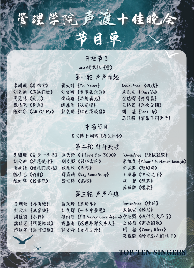 2020學(xué)年管理學(xué)院十佳歌手冠軍