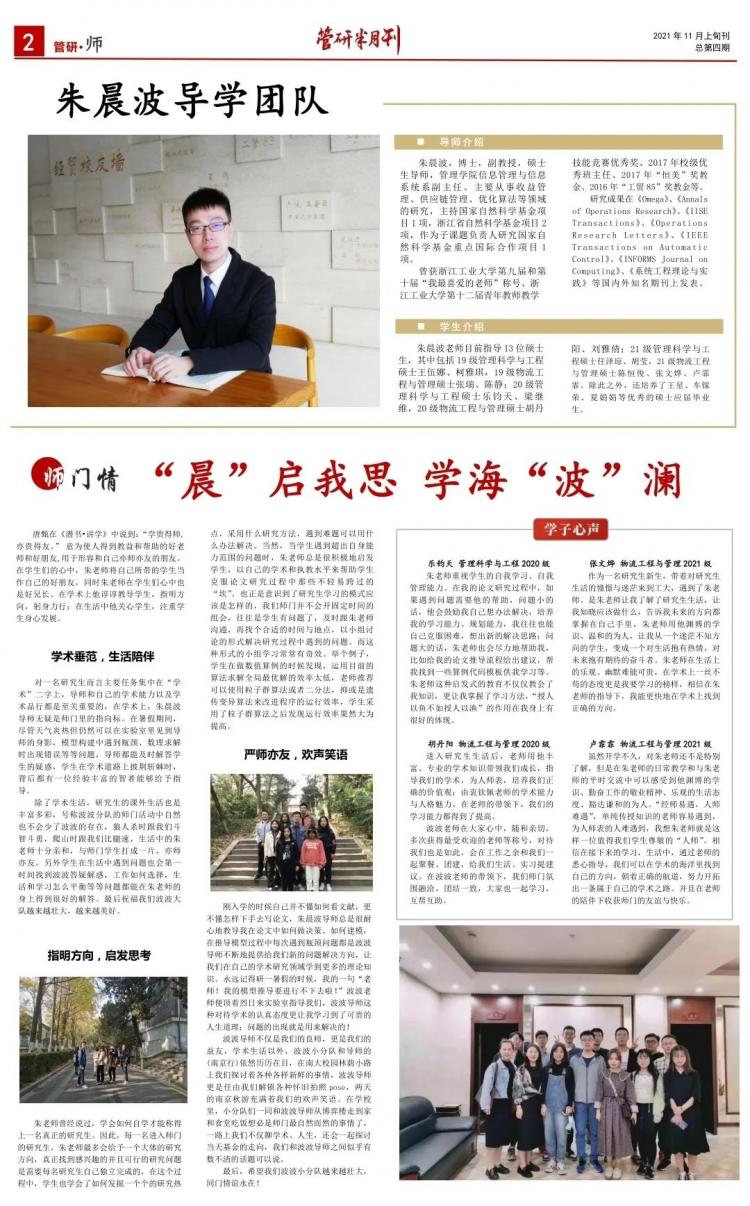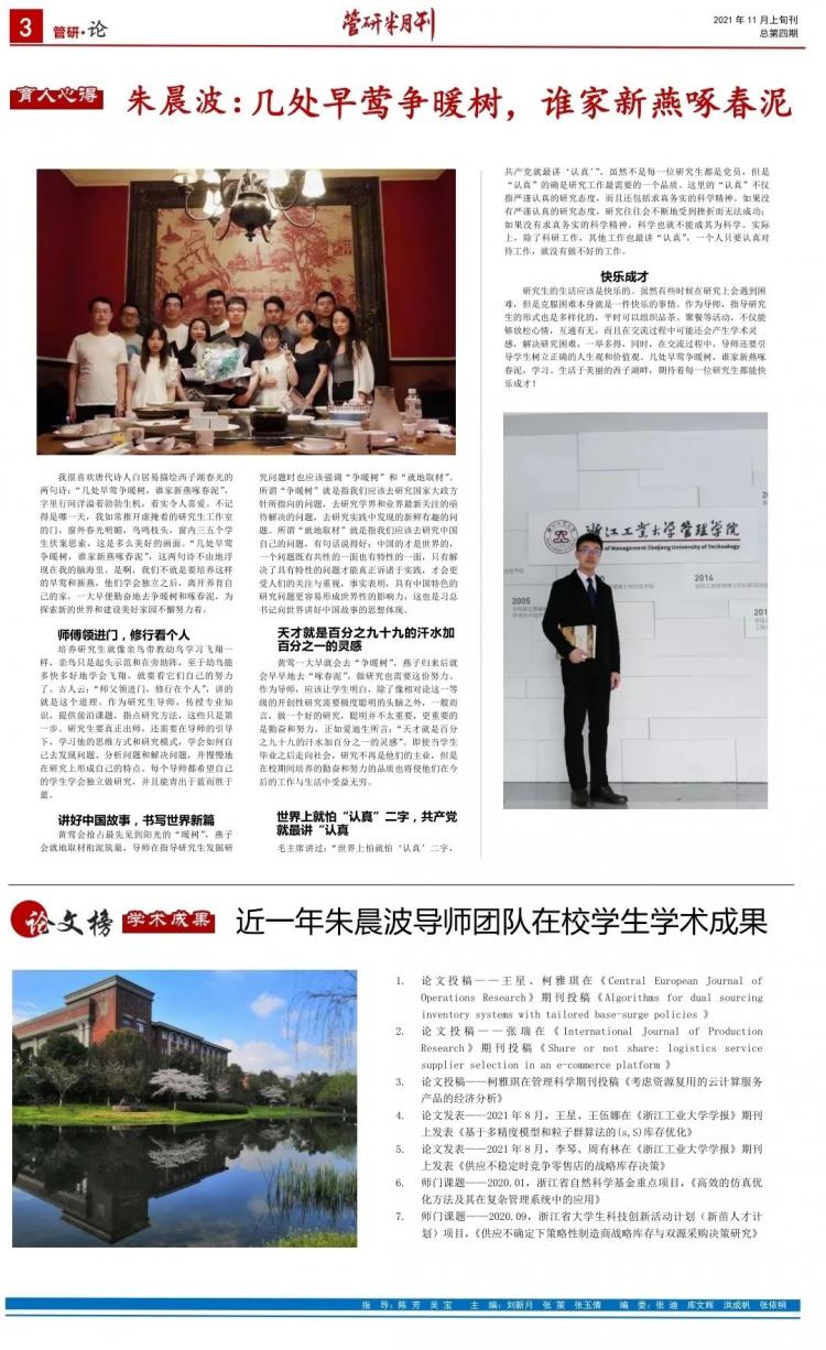 為加強學院導師團隊之間的溝通交流,營造導學共進的良好氛圍,管理學院新創(chuàng)《管研半月刊》??镌O“管研·思”、“管研·師”、“管研·論”三個板塊,分別對應研究生思想建設、導學團隊故事、導師育人心得以及學生學術成果,每期聚焦一個導學團隊進行征稿??锵Mㄟ^聚焦黨史、時政熱點,引領研究生守初心、擔使命;通過講述優(yōu)秀的導學故事,傳播導學文化正能量;匯聚導師育人心得與學生科研成果,助推全院導師和研究生能力共提升。