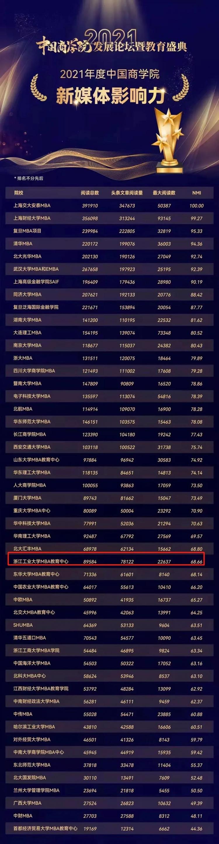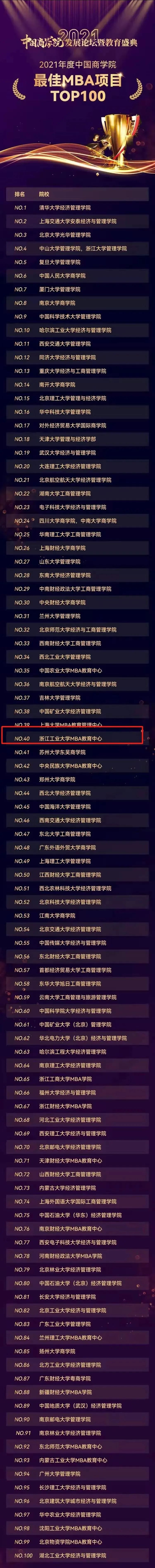 浙工大管理學(xué)院MBA項(xiàng)目榮獲“2021年度中國(guó)商學(xué)院最佳MBA項(xiàng)目TOP100”第40名!