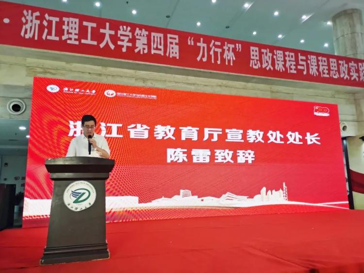 浙江省教育廳宣教處處長陳雷致辭。他認(rèn)為,學(xué)生的學(xué)習(xí)實(shí)踐表明浙江理工大學(xué)立德樹人的任務(wù)是落到實(shí)處的。在濃濃的紅色文化氛圍里邊,學(xué)生展作品,抒情懷,明大志,是一種有效的育人模式的創(chuàng)新。