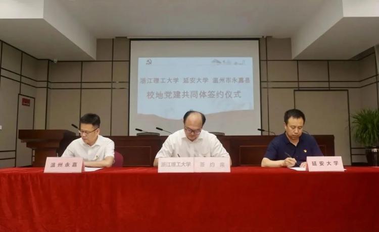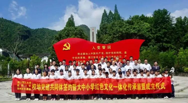 成立儀式上,延安大學(xué)、浙江理工大學(xué)和永嘉縣簽訂了“校地黨建共同體”建設(shè)協(xié)議書,并為“大中小學(xué)紅色文化一體化傳承聯(lián)盟”揭牌。