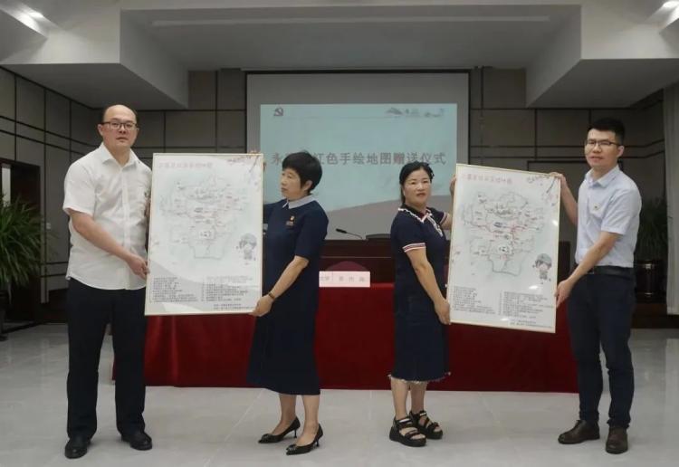 浙江理工大學(xué)將學(xué)校學(xué)子創(chuàng)作的永嘉縣紅色手繪地圖贈(zèng)與了永嘉縣中小學(xué)。