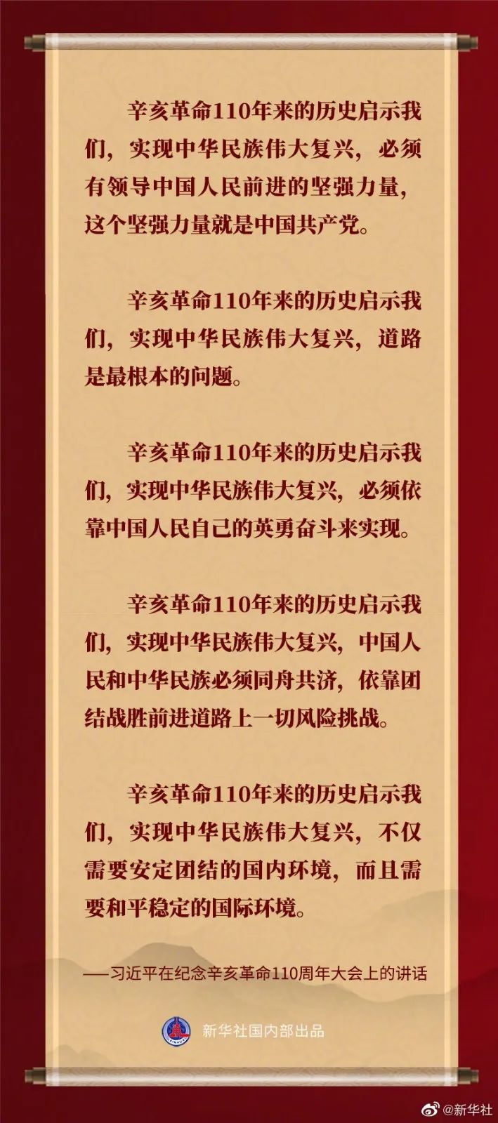 今天上午,紀(jì)念辛亥革命110周年大會在北京人民大會堂隆重舉行。中共中央總書記、國家主席、中央軍委主席習(xí)近平出席大會并發(fā)表重要講話。
