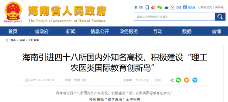 據(jù)海南日報、海南省人民政府官網(wǎng)報道,海南已累計簽約引進48所國內(nèi)外知名高校,積極建設(shè)“理工農(nóng)醫(yī)類國際教育創(chuàng)新島”,海南推進國際教育創(chuàng)新島建設(shè)態(tài)勢積極向好。