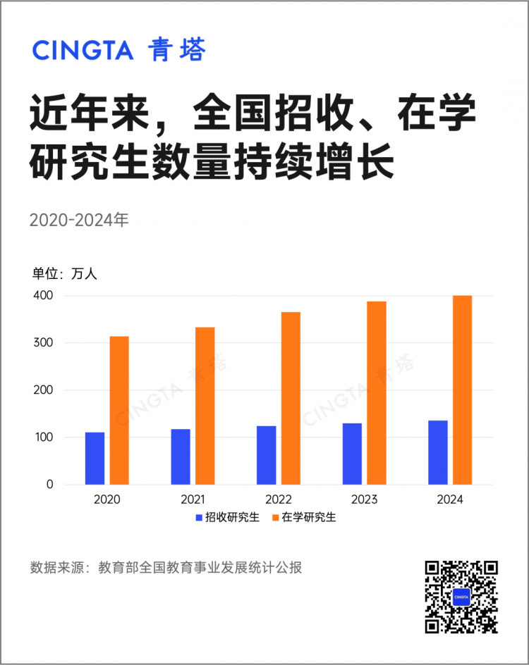 2020年2月,時任教育部副部長翁鐵慧在新聞發(fā)布會上宣布:擴大碩士研究生招生規(guī)模。這一年實際招收研究生110.66萬,較2019年擴招了19.01萬,增幅達到了20.74%。新一輪研究生擴招,就此拉開序幕。