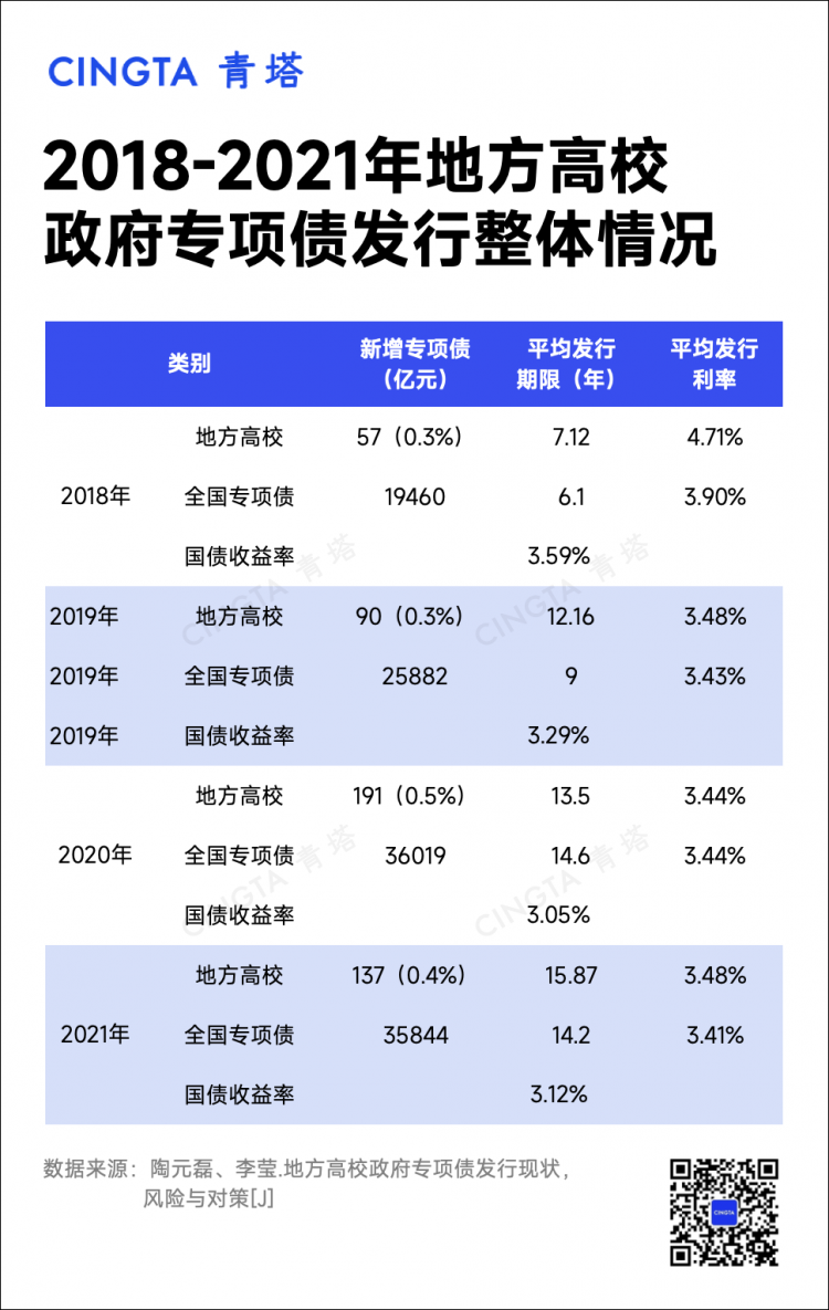 此前一項研究顯示,2018-2021年,全國256所地方高校累計發(fā)行地方高校政府專項債475億元。2020年,河南大學便曾獲批河南公辦高校專項債券1.5億元,用于鄭州校區(qū)建設(shè)。