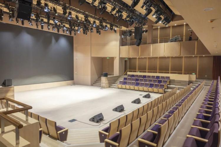 賞樂樓與演藝樓設(shè)有818座劇院、800座音樂廳、200座現(xiàn)代音樂廳及圖書館、行政與教學(xué)空間。劇院、音樂廳及錄音棚采用“房中房”、琴房與排練廳采用“盒中盒”結(jié)構(gòu),結(jié)合消聲減震技術(shù),確保頂級聲學(xué)效果。音樂廳配備60音栓管風(fēng)琴,達(dá)國際專業(yè)標(biāo)準(zhǔn)。場館在服務(wù)教學(xué)的同時也聯(lián)動國內(nèi)外藝術(shù)機(jī)構(gòu),打造粵港澳大灣區(qū)高端文化藝術(shù)平臺。